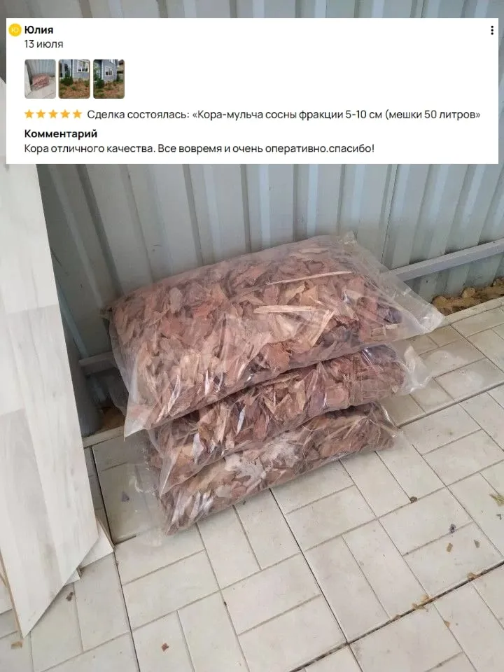 Интернет-магазин «Перегной» обеспечивает доставку коры сосны в Дубну без предоплаты. Наша кора сосны является натуральным и экологически чистым продуктом, который бережно выращивается и производится в лесах России.